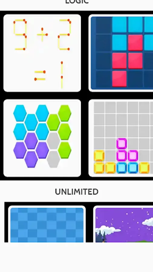 Lines, matches, unlock block, pipes, lasers, maze and more.