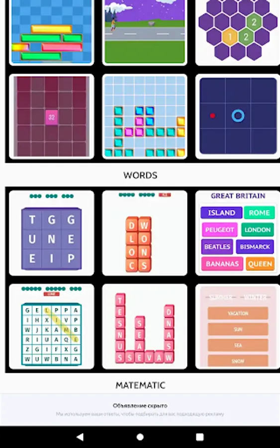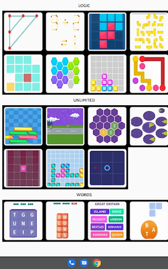 2048, Crystal Explosion, Colored Rings, Steeplechase, etc.