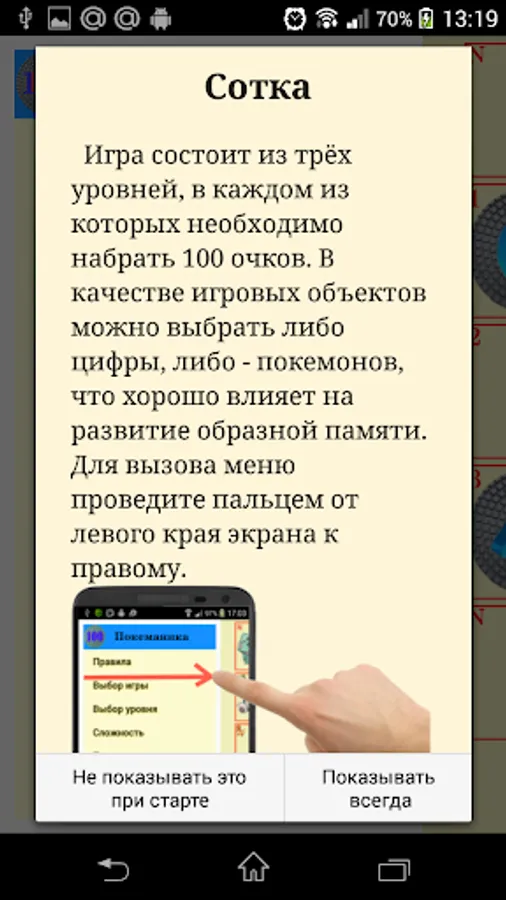 In the game there are three levels, each of which is opened by passing the previous one. Game objects may be numbers, cats or dogs, which in turn will be interesting to children and will serve as a good training for the development of figurative memory. As a bonus, the game added to the classic game of "tag."