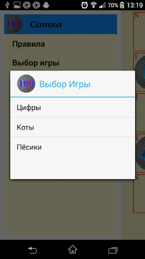 In the game there are three levels, each of which is opened by passing the previous one. Game objects may be numbers, cats or dogs, which in turn will be interesting to children and will serve as a good training for the development of figurative memory. As a bonus, the game added to the classic game of "tag."