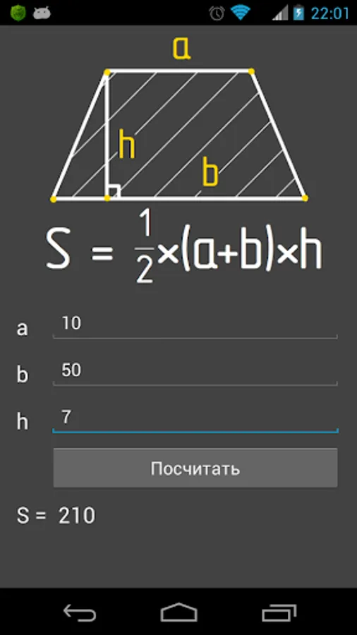 This calculator will help You calculate the size of the geometric shapes such as a triangle, circle, square, rhomb sector, the segment etc