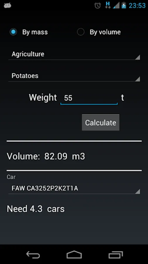 Calculator bulk materials - allows you to calculate the approximate mass of bulk materials by volume or volume weight.