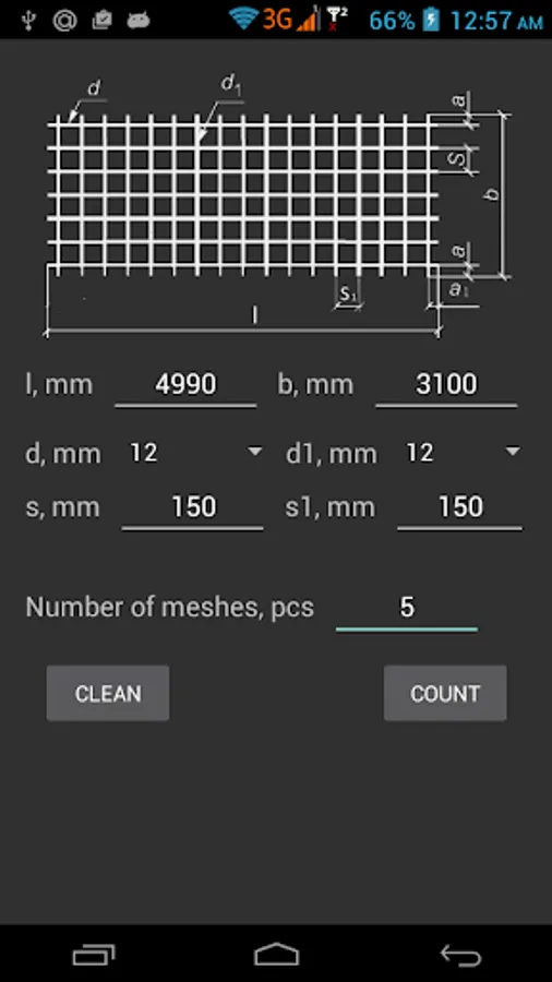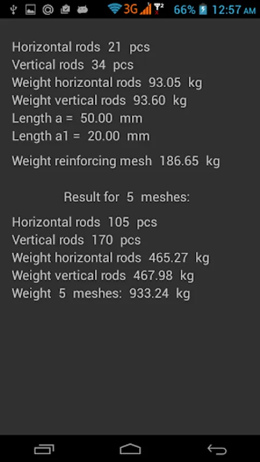 The calculator allows to define the theoretical mass of reinforcing bars steel grid of circular cross-section with a constant pitch of the bars in the longitudinal and transverse directions.