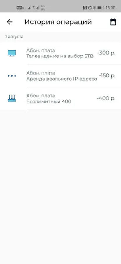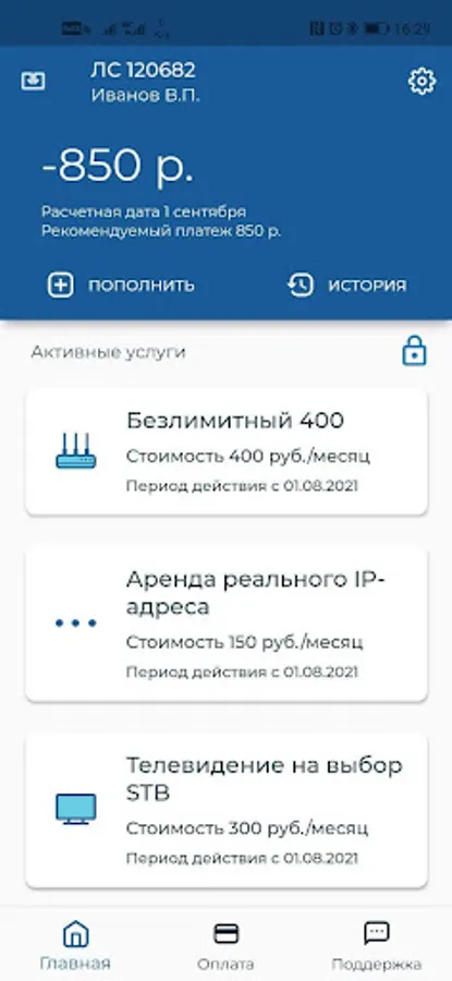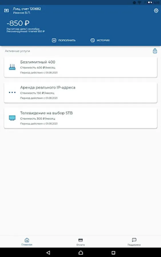 Our application will allow you to conveniently manage services without visiting the office and calling technical support. Key features: