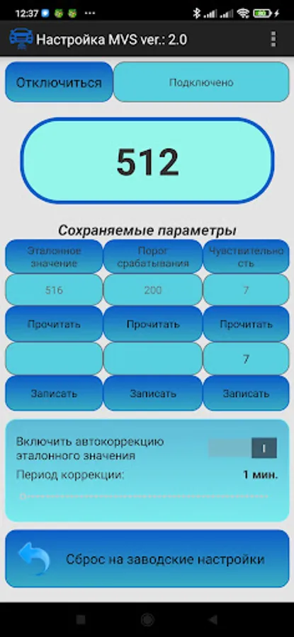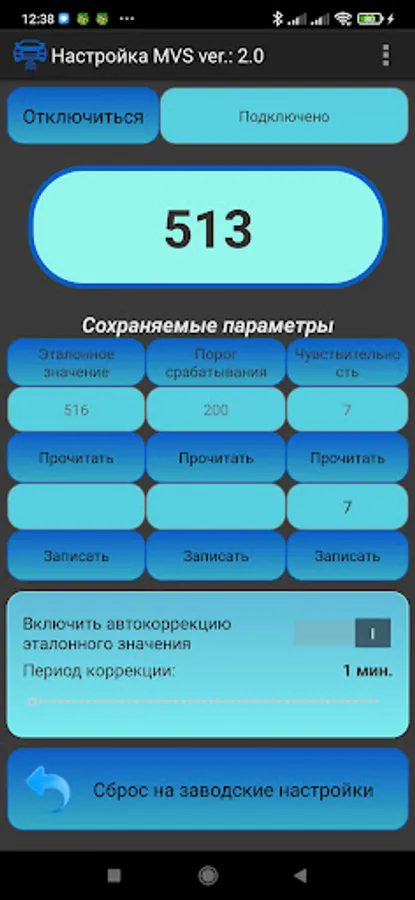 The application is designed to configure the MVS (Magnetic Vehicle Sensor) magnetic vehicle detection sensor, developed by Svyaz PTK LLC. The mode of auto-correction of the reference value of the sensor for a specified period (from 1 to 50 minutes) is provided. The principle of operation of auto-correction: if for the selected period the average value of the last 6 measurements has changed by more than 1/3 of the response threshold, but less than the response threshold value, the reference value is corrected. In order to enable the auto-correction counter, it is necessary to save the reference value in the device's memory. If the reference value is not stored, then it is set to the measurement value after 3 seconds after switching on.