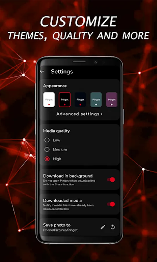 If you need to save photo or video from Pinterest on your device, then the Pinget app is what you need! Download the pinterest downloader right now and have fun with it! Beautiful, fast, convenient and without intrusive ads! This pinterest video downloader and pinterest photo downloader is the best solution for you.