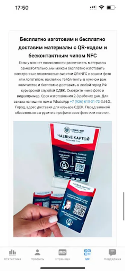 Free plastic electronic business cards with QR code and NFC chip! Printed materials with QR in the office! Without terminals and applications!