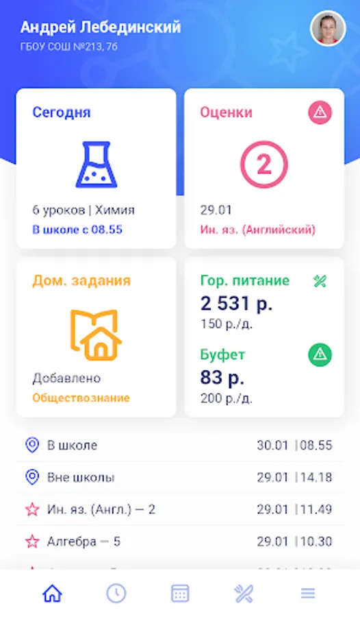 The application was developed by the Committee on Informatization and Communications on the order of the Education Committee, and is recommended for use by both parents (legal representatives) of students and the students themselves (registration on the St. Petersburg Education portal is required). Learn homework, keep track of grades, control the diet of your children (available for schools participating in the Unified Schoolchild Card project)