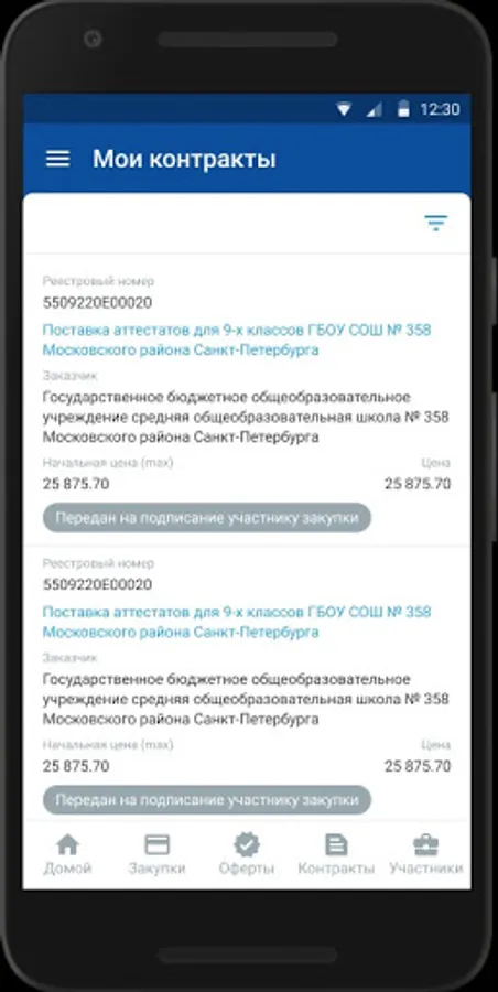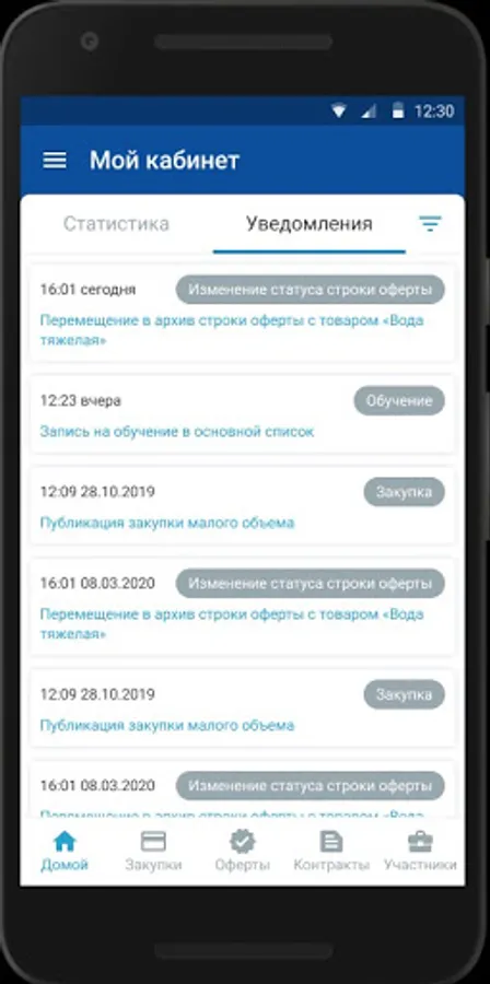 Additionally, an authorized user can quickly receive information about changes in the status of purchases and contracts, add events to the calendar, and view information in their personal accounts.