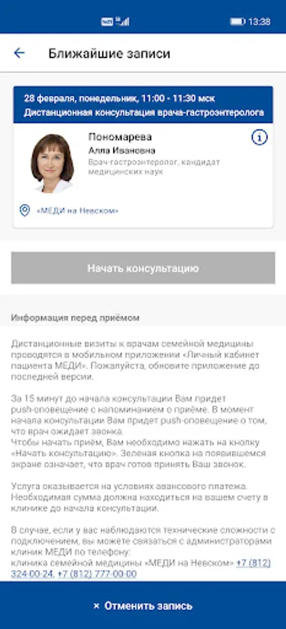– ask questions about the services and about the organization of reception in clinics to MEDI operator-consultants;