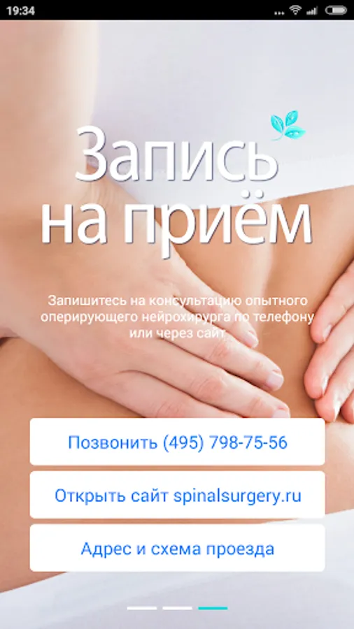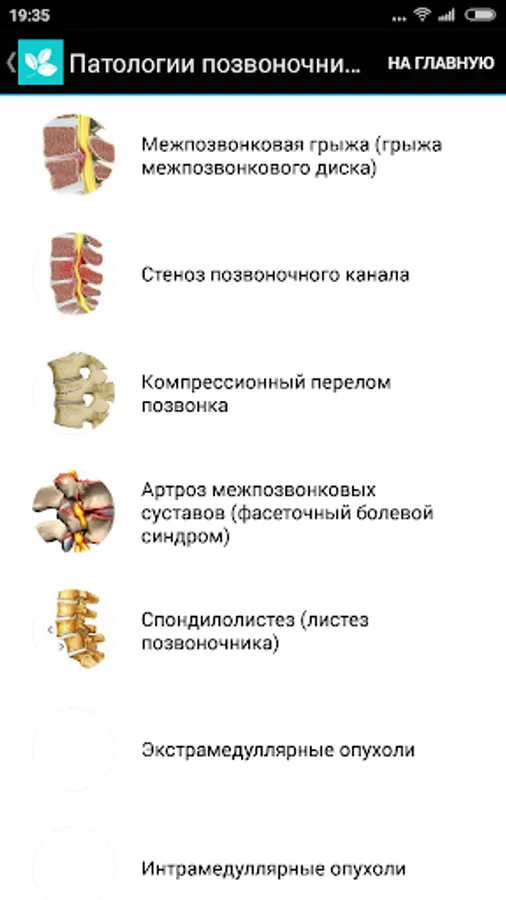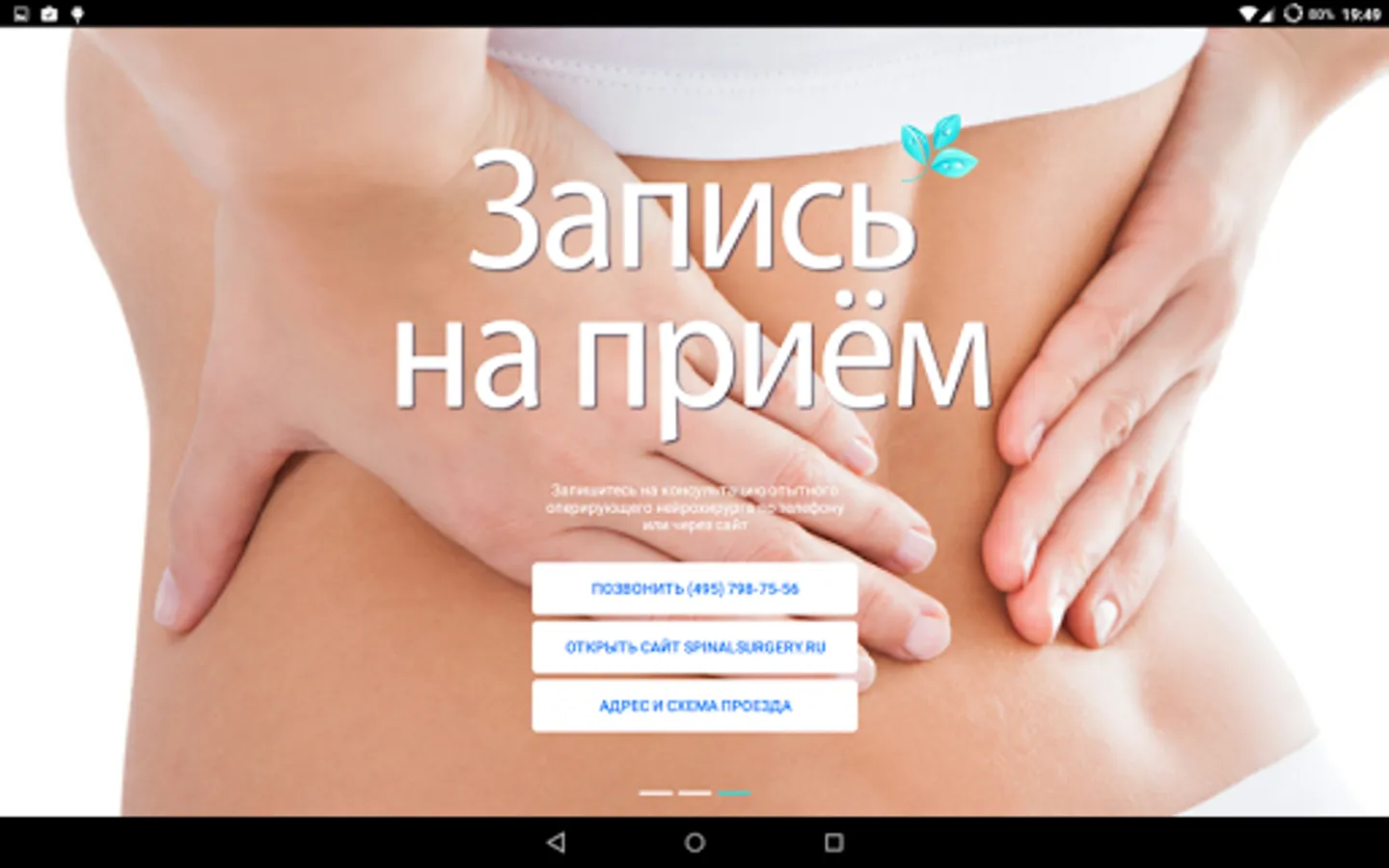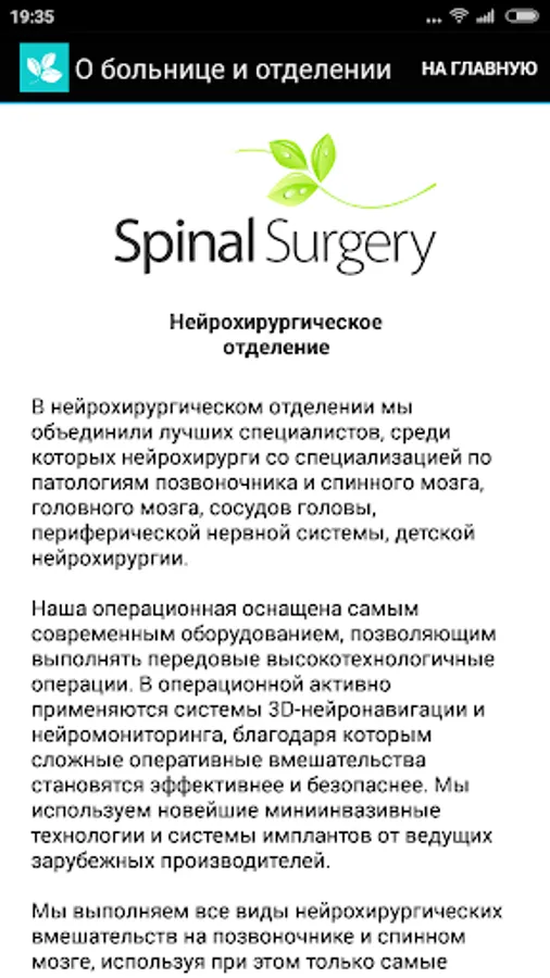 The app also contains a directory of diseases, where you will find a description of the most common pathologies of the spine and brain, as well as information about the minimally invasive neurosurgical treatments.