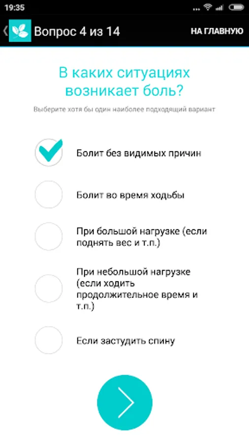 Important to understand that an accurate diagnosis can only be made on the basis of the doctor studies. Our app can only suggest the most likely cause of back pain based on these symptoms. The main function of this application - determined by the presence or absence of symptoms you have, "alarm bells" and turn your attention to this, so you are not put off a visit to a specialist. The application does not provide "advice on the treatment of" and "recommendations for exercise," because you can not do without the internal consultation of a qualified professional. Again, it is important to understand this and hope that the application by some miracle will save you from back pain.