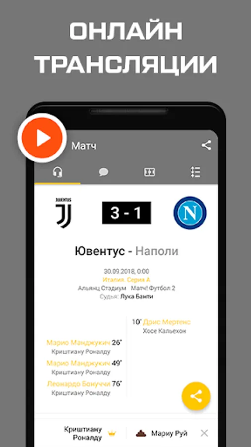 Juventus by Sports.ru is the best app for Juventus fans. Match results and calendar, text broadcasts, news and videos - everything about your favorite team, promptly and in detail. Keeping track of Juventus has never been so convenient.