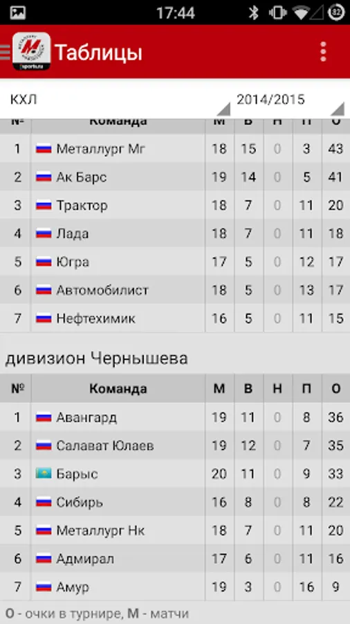 - Text online broadcasts of matches, the championship calendar and standings of the division, conferences and playoffs: