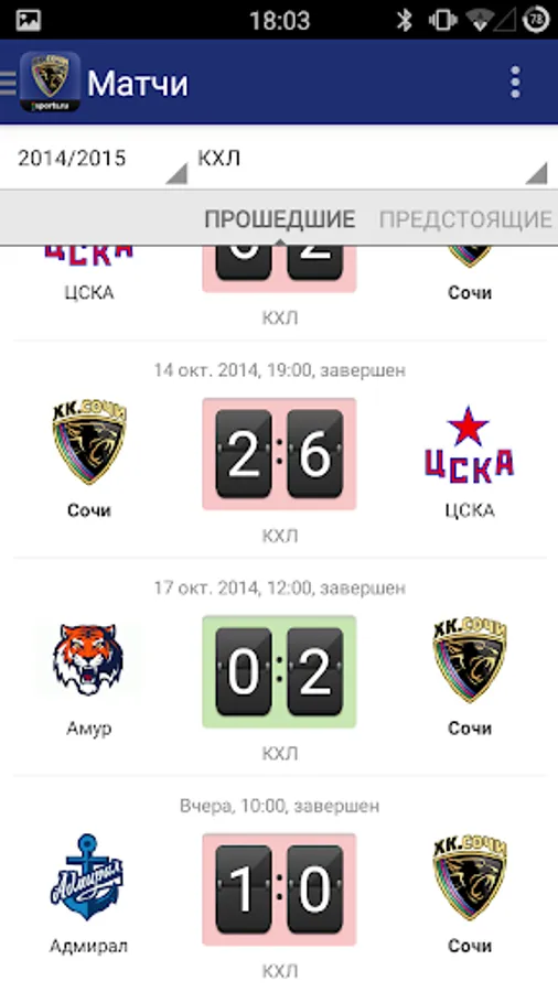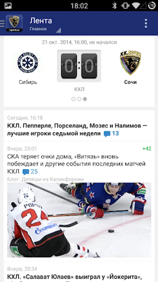 HC Sochi from Sports.ru for Android is a new application about the hockey club "Sochi", which plays in the Kontinental Hockey League (KHL), allows the fan to always be aware of what is happening in their favorite team. Application includes: