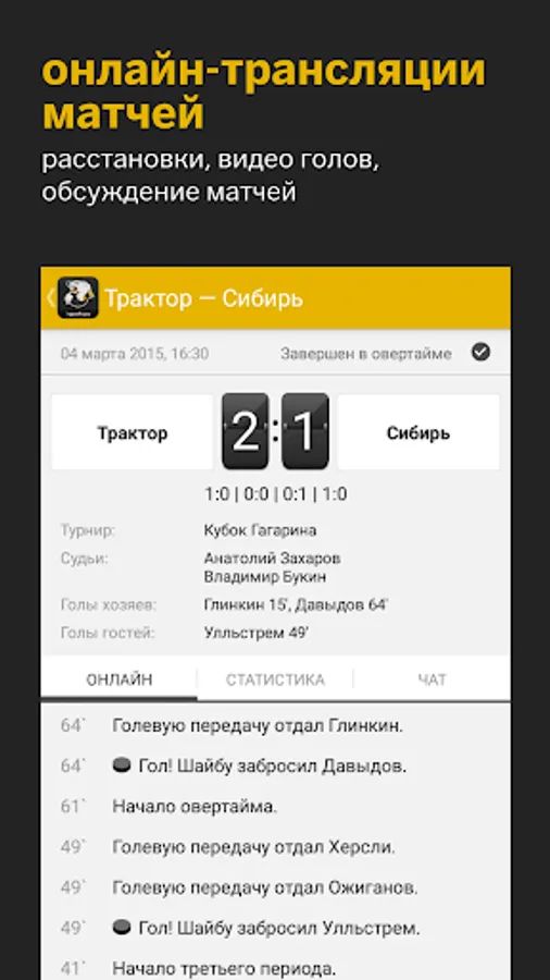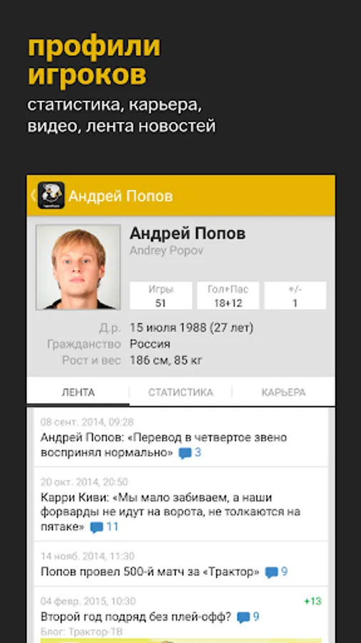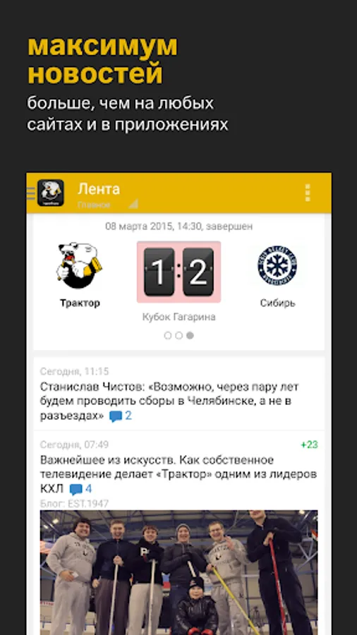HC Traktor from Sports.ru for Android is a new application about the hockey club "Traktor", which plays in the Kontinental Hockey League (KHL), allows the fan to always be aware of what is happening in his favorite team. Application includes: