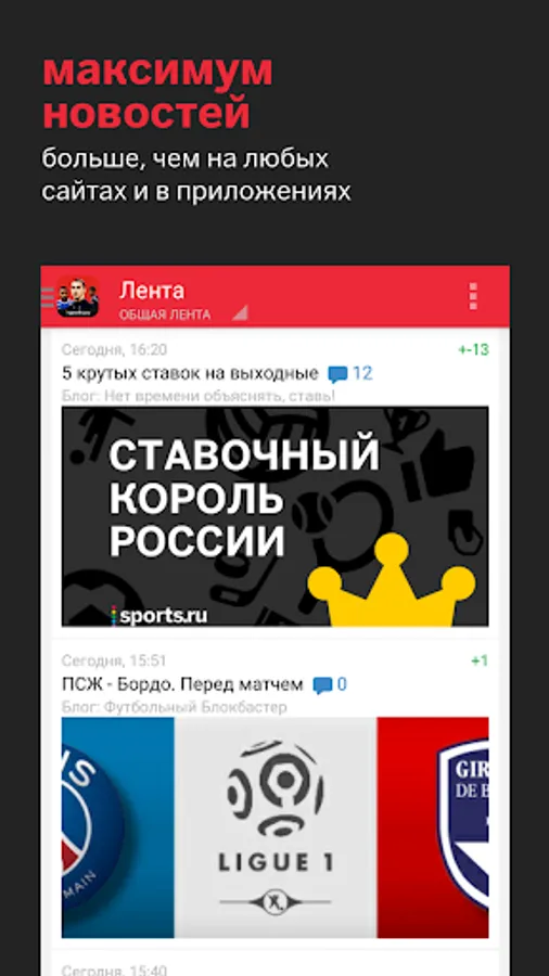 Liga-1 from Sports.ru is the best app for fans of the French football championship. Match results and calendar, text broadcasts, news and videos - everything about your favorite tournament, quickly and in detail. Watching the French championship has never been so convenient.
