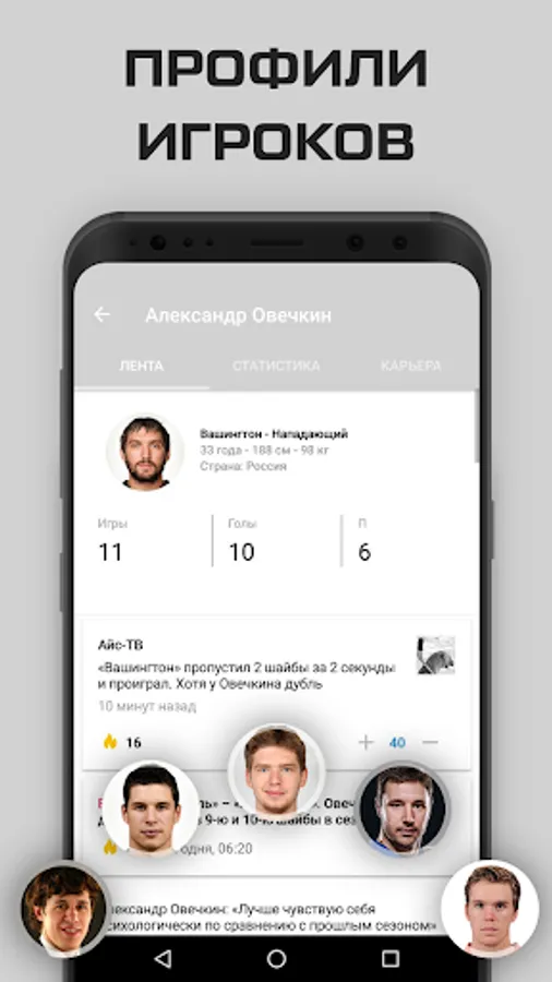 Now you will not miss any news about the best NHL players: Alexander Ovechkin, Evgeni Malkin, Kirill Kaprizov, Vladimir Tarasenko, Sidney Crosby, Patrick Kane, Nikita Kucherov and other stars of the National Hockey League in your phone!