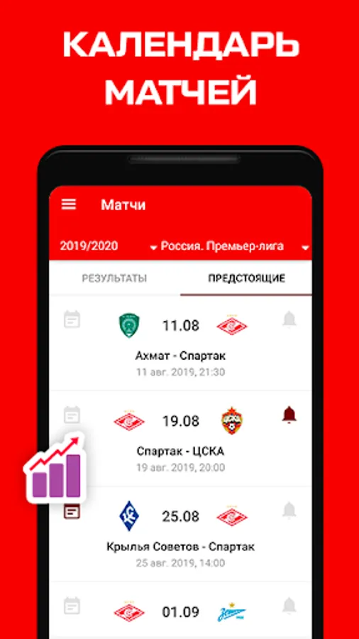 • Calendar and schedule of matches (RFPL, Russian Cup, European Cups, and of course the famous derby Spartak - CSKA);