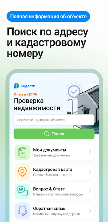 The application does not belong to Rosreestr and does not impersonate it. The application provides information and analytical services for the verification of real estate objects based on official information from Rosreestr and other open sources.