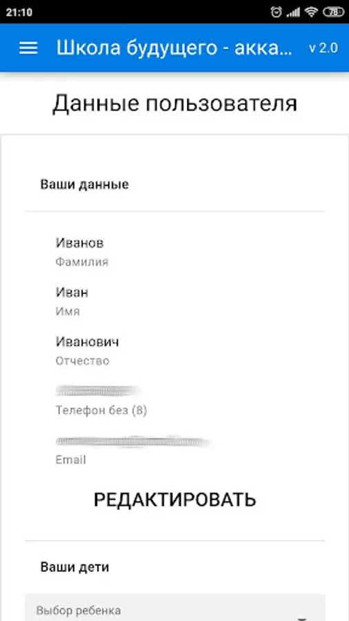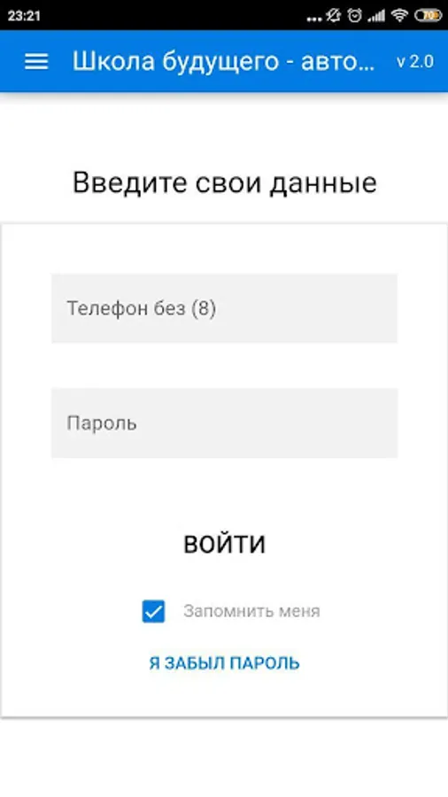 To enter the mobile application, the username and password from the Personal Account of the user of the School of the Future system are used. Login is a mobile number without a figure eight. The password is sent to the subscriber in an SMS message upon request. You will find all the necessary information on the website www.school-system.ru or receive by phone (863) 260-75-25