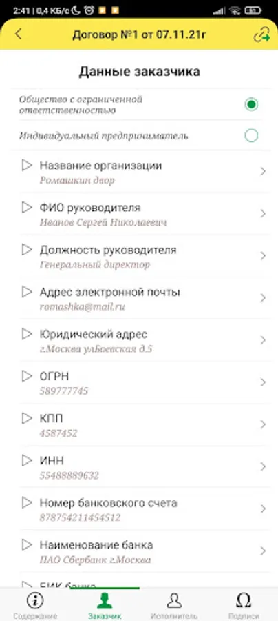 You do not need to fill in all the details of the customer and the contractor every time, if you once drew up an agreement and filled in the details, then just copy the previous agreement!