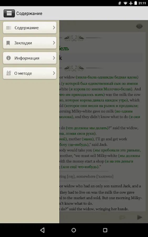 Appendix promotes effective development of the English language, can serve as a supplement to the curriculum. Designed for students for English language learners themselves, but also for anyone interested in English culture. At the same time reading the text, you can listen to an audio track, or simply use the application as an audiobook.