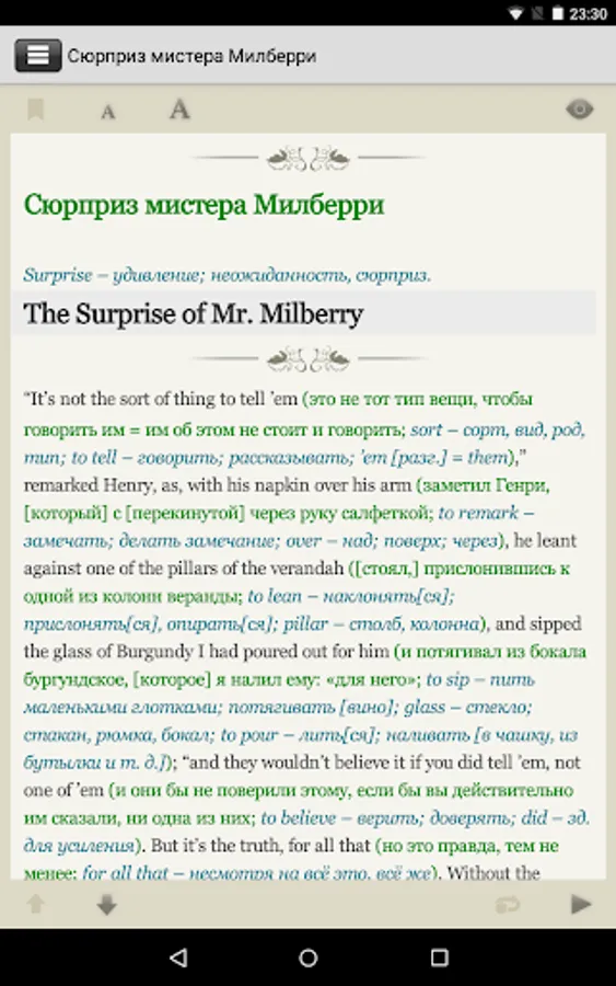The annex includes three wonderful humorous stories - "Surprise Mr. Millberry", "The Phantom of the Marquise Eplford" and "Romancing the wife of Tom Drain", adapted (without simplification of the original text) method Ilya Franka®, with professional audio tracks.