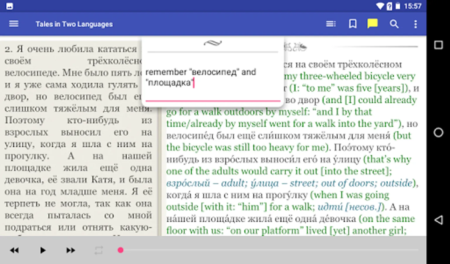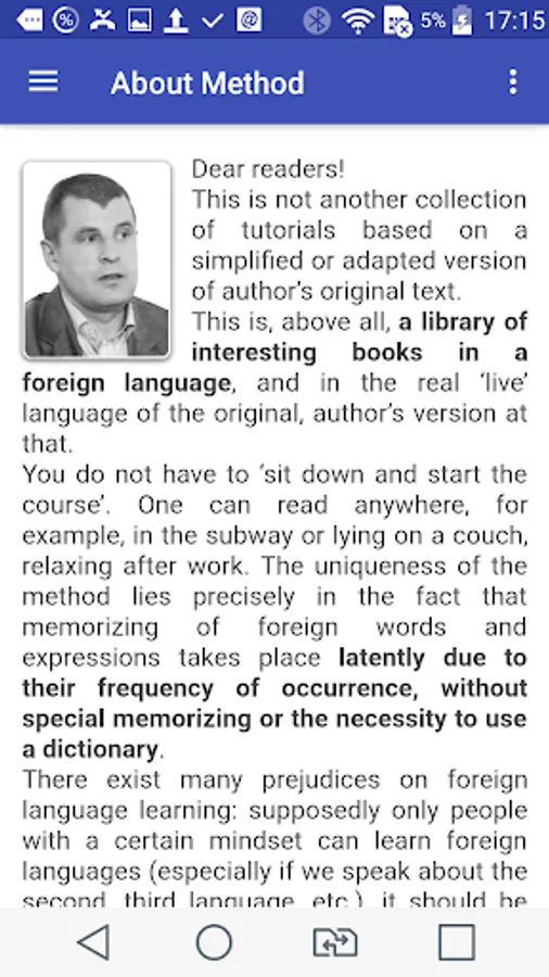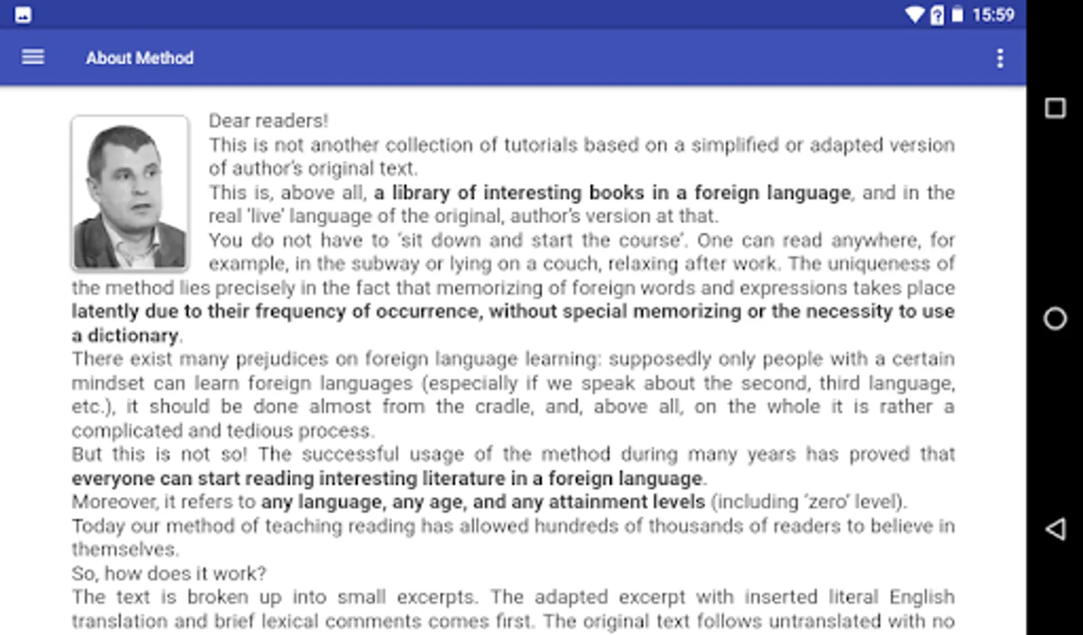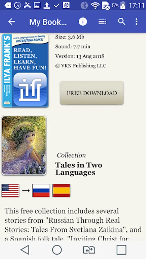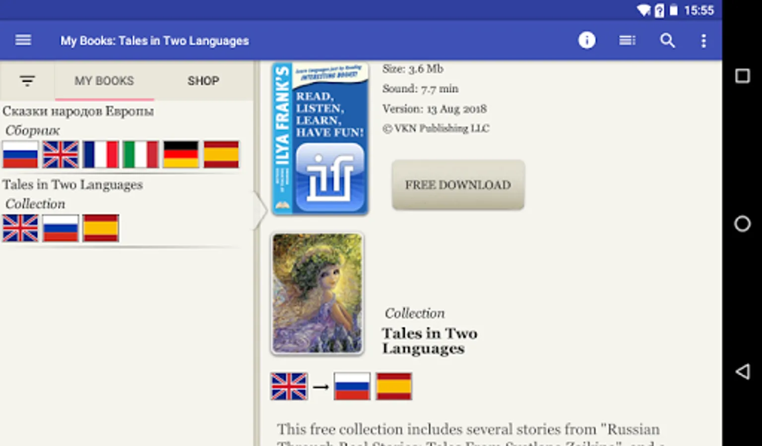 This app helps you to learn foreign languages using Ilya Frank’s Method of Teaching Reading®, simply by reading interesting books. You can get acquainted with the Method by downloading for free and reading several tales in Russian and Spanish. Then you can check out our "Shop" section for more languages and complete books!