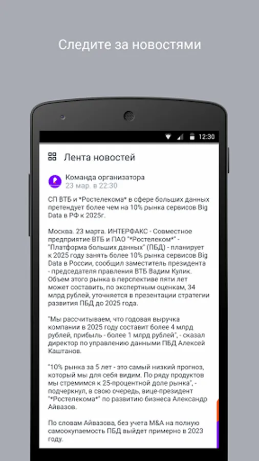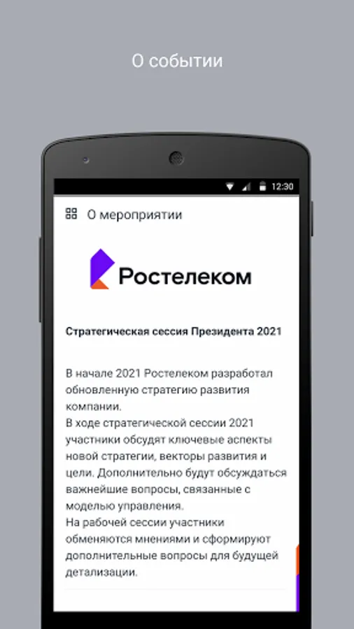 The official application for the event “Strategic Session of the President 2021”. You can: follow the schedule update in real time; communicate with event participants through the application; find out the details of the reports and ask the speakers questions; access the downloaded content.