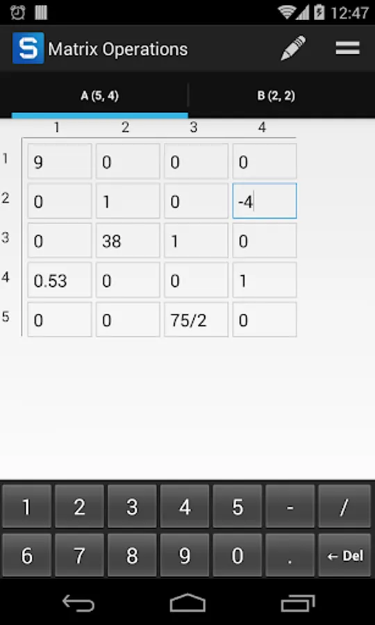 - Solve systems of linear equations (with Gauss algorithm) A*X=B.