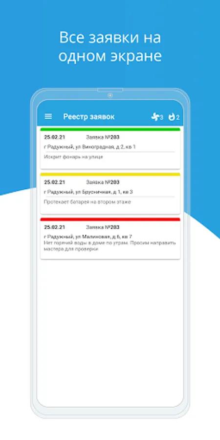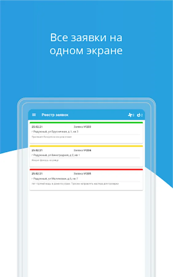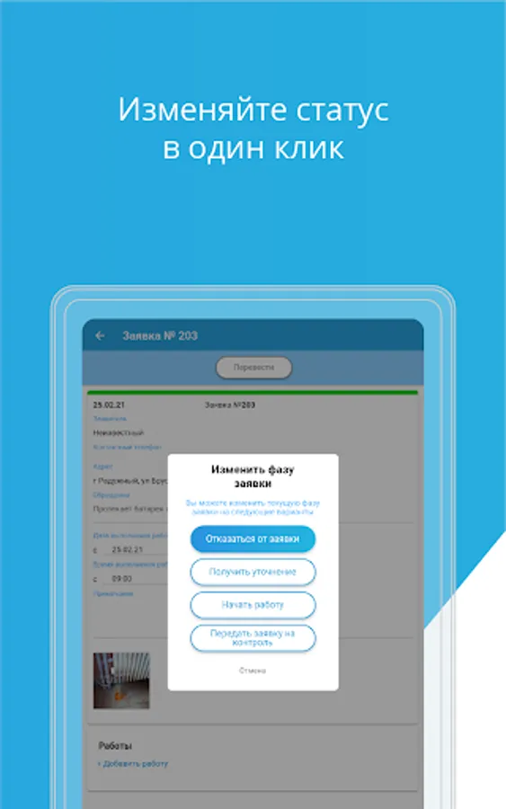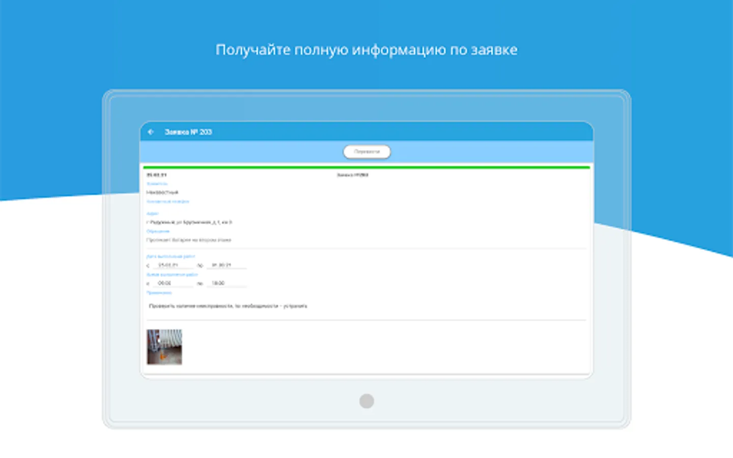• The contractor can, even in the absence of the Internet, use certain functions of the application: view applications, change their statuses, attach photographs and add comments.