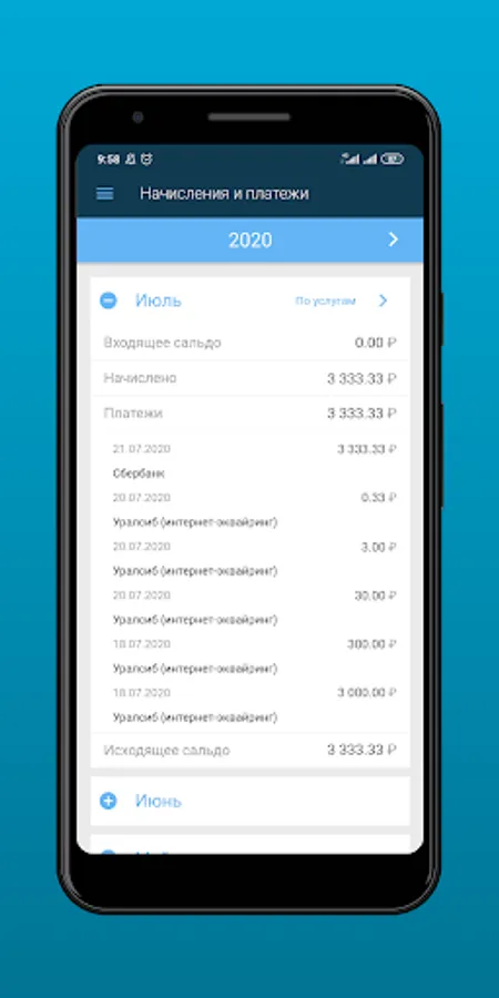 • View the history of charges and payments (even with a breakdown of charges for services per month)