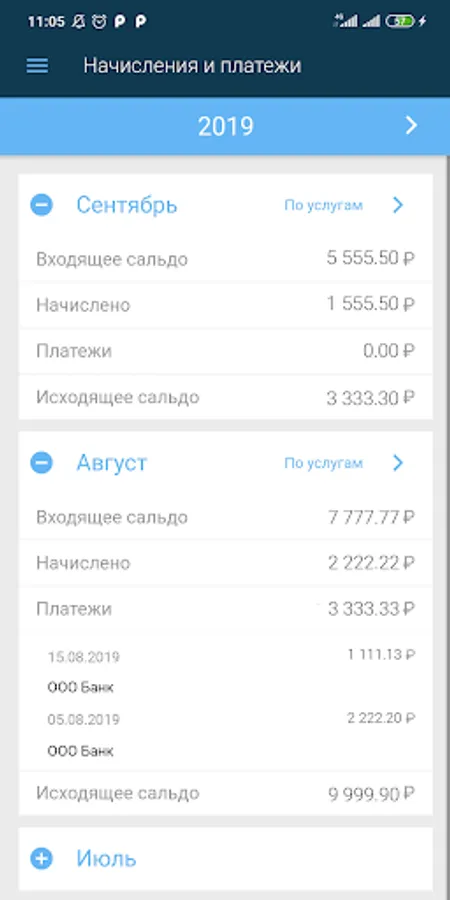 • View the history of charges and payments (even with a breakdown of charges for services for the month)
