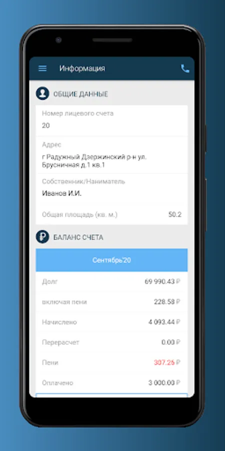 In the Personal Account, the subscriber receives detailed information about the state of his personal account, current balance, history of payments and transmitted readings.