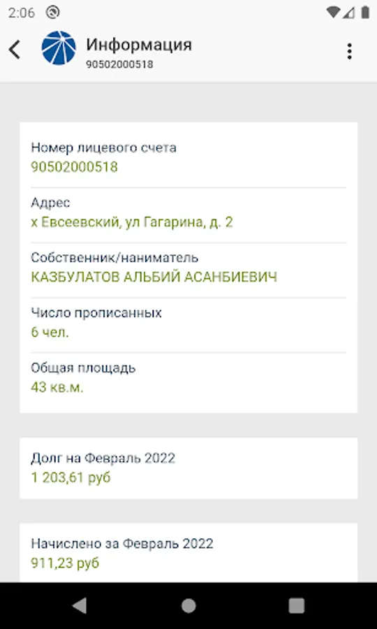 In our application, all functions of the WEB-version of the personal account are available, namely: