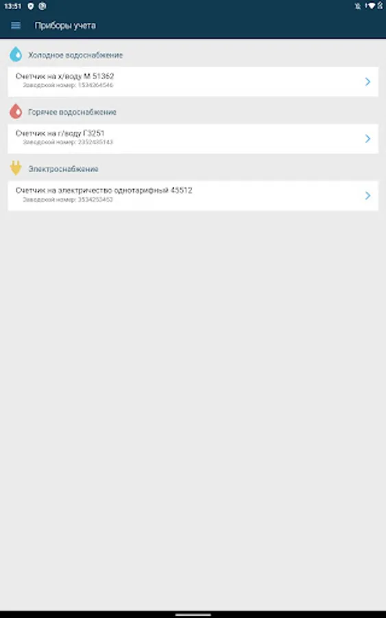 - View the history of transferred readings, the history of accruals and payments;