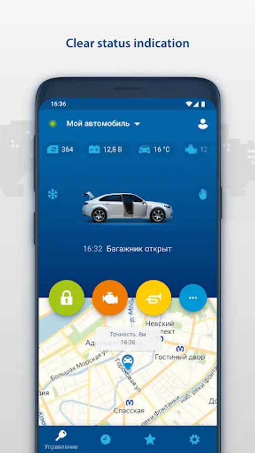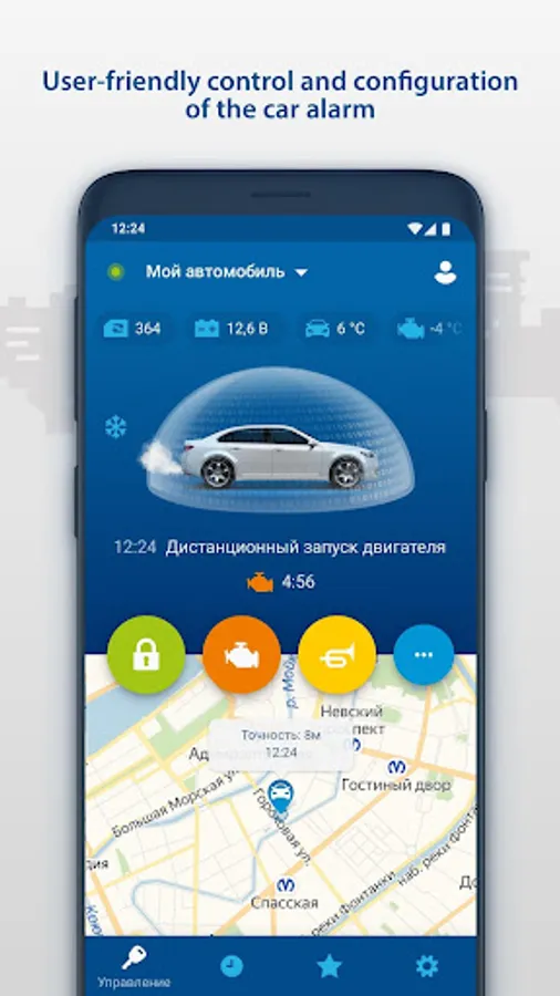 - Receive PUSH messages on any events with your vehicle (alarm, engine started, security mode switched off, etc.)