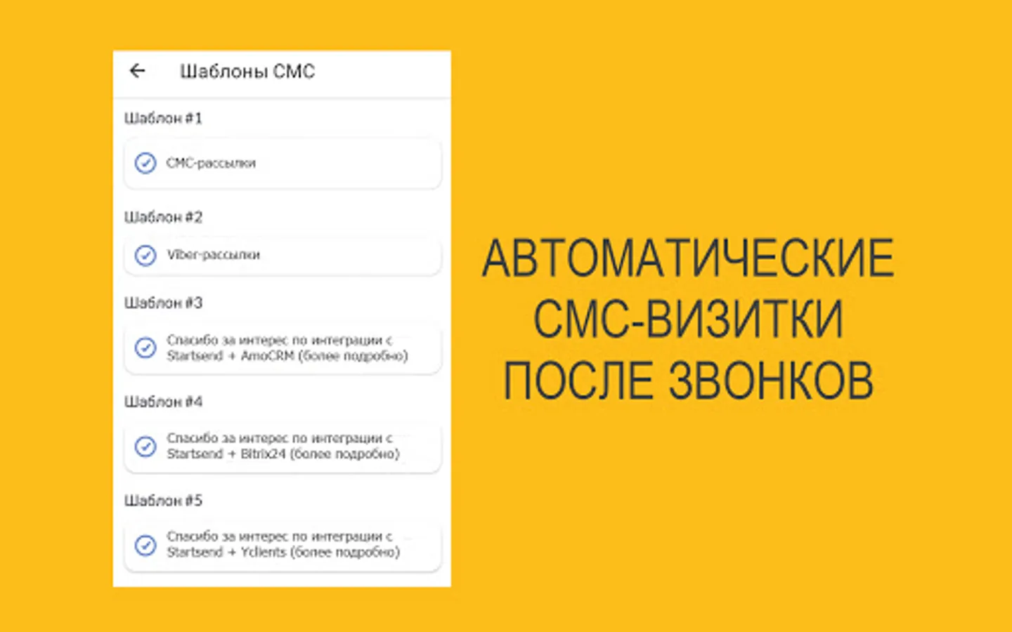 SMS business card is an opportunity to send SMS to the caller, according to a previously thought out template, for example: "Thank you for contacting StartSend.ru, we send not only SMS, but also Viber and voice mailings. Our email: info@startsend.ru"