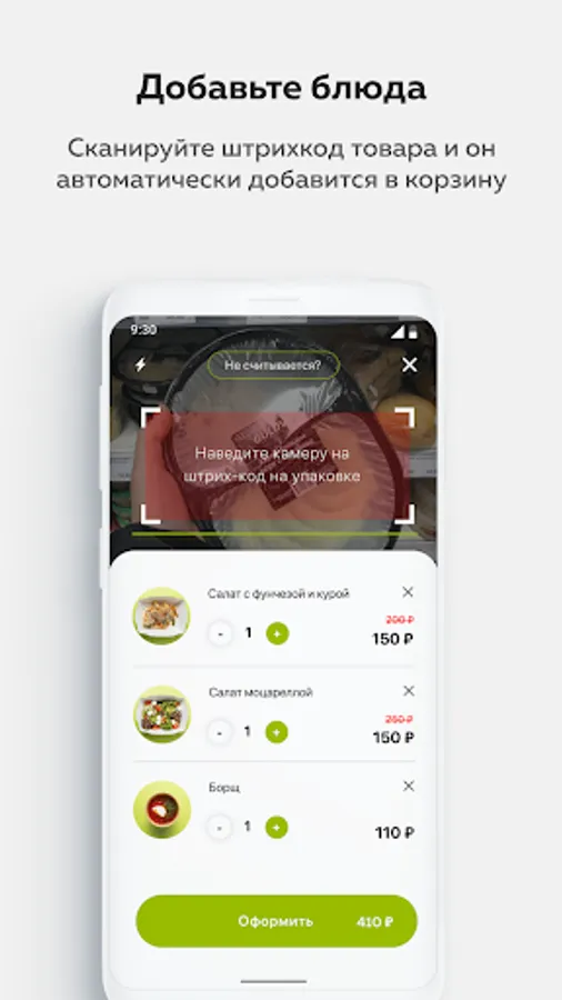 2. Add products. Scan the barcode of the product and it will be automatically added to the cart;