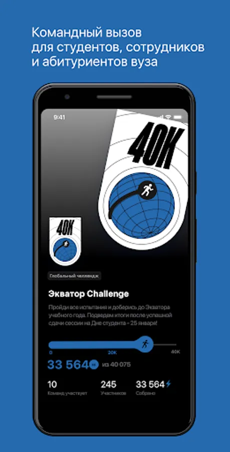 1. Global Challenge - participants unite in the application to solve a common challenge. The app captures everyone's contribution in real time and displays how the team is progressing towards the goal.
