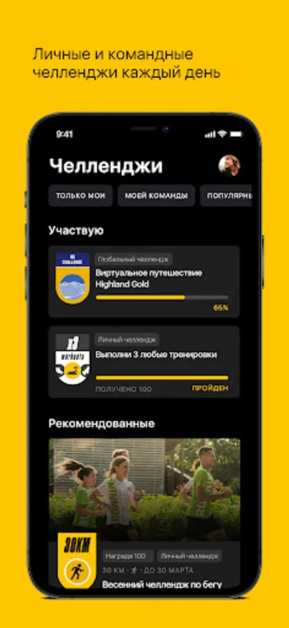 - Team and personal sports challenges - more than 20 types of physical activity