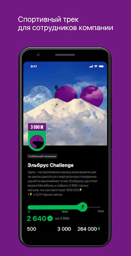 Participate in the global challenge. Together we will conquer Elbrus. It is here that the highest base station in all of Eastern Europe is located - the base station of MegaFon! It was built at an altitude of 3890 meters. This is the distance we have to overcome. To do this, we will convert the charges into meters. How? Let's talk about the challenge itself.