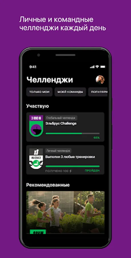 Accept personal challenges and achieve victories. These can be activities and workouts from our app, or they can be your own activities, such as going to the pool or dancing.