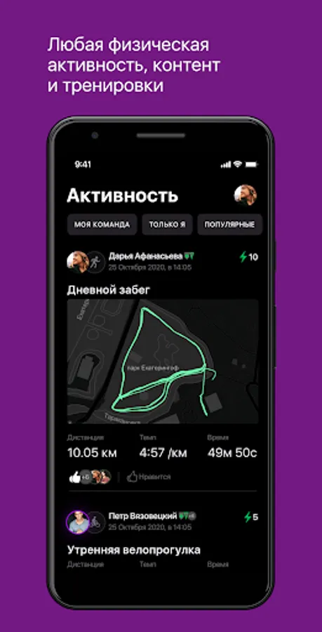 Get a positive charge. The charge is the internal currency of the application. The number of charges earned is your personal rating and the rating of your team: the more charges each member earns, the higher the rating of the whole team. Each activity will bring you a different number of charges - depending on the sport and difficulty level.