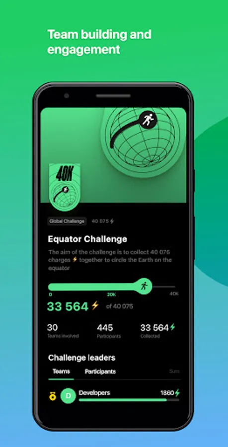 1. Global Challenge — participants unite in the app to solve a shared challenge. The application captures everyone's contribution in real-time and shows how the team is moving towards the goal.