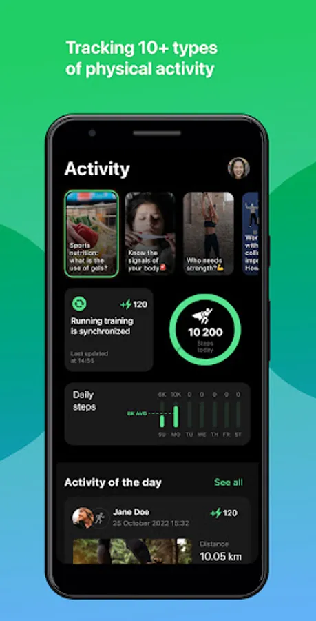 - auto sync with Apple Health, Google Fit, Polar Flow и Garmin Connect