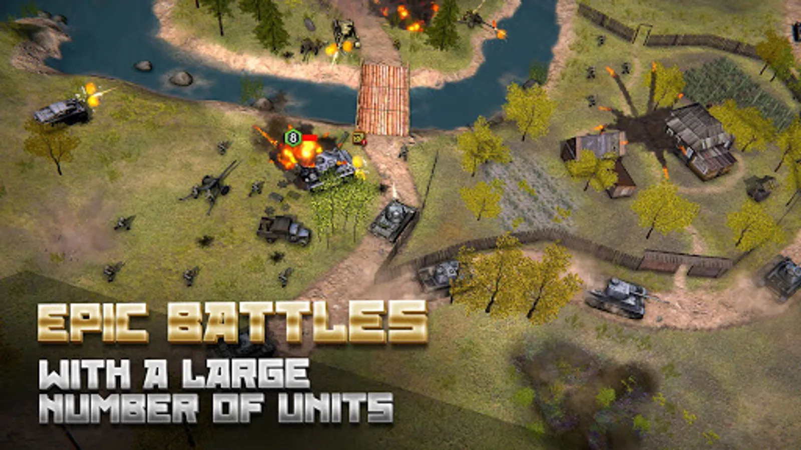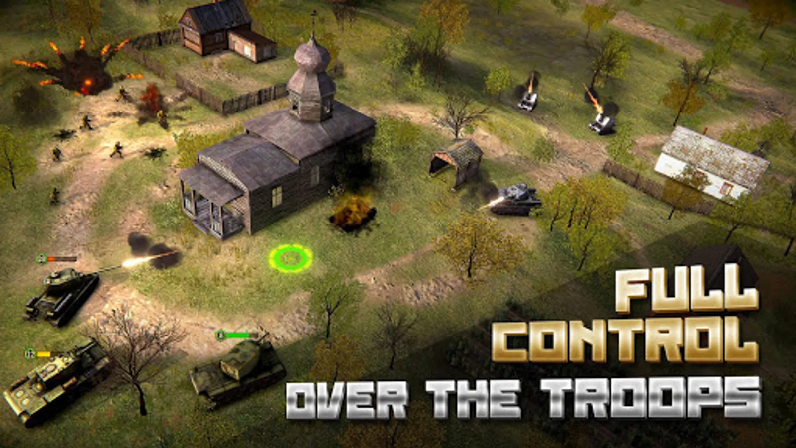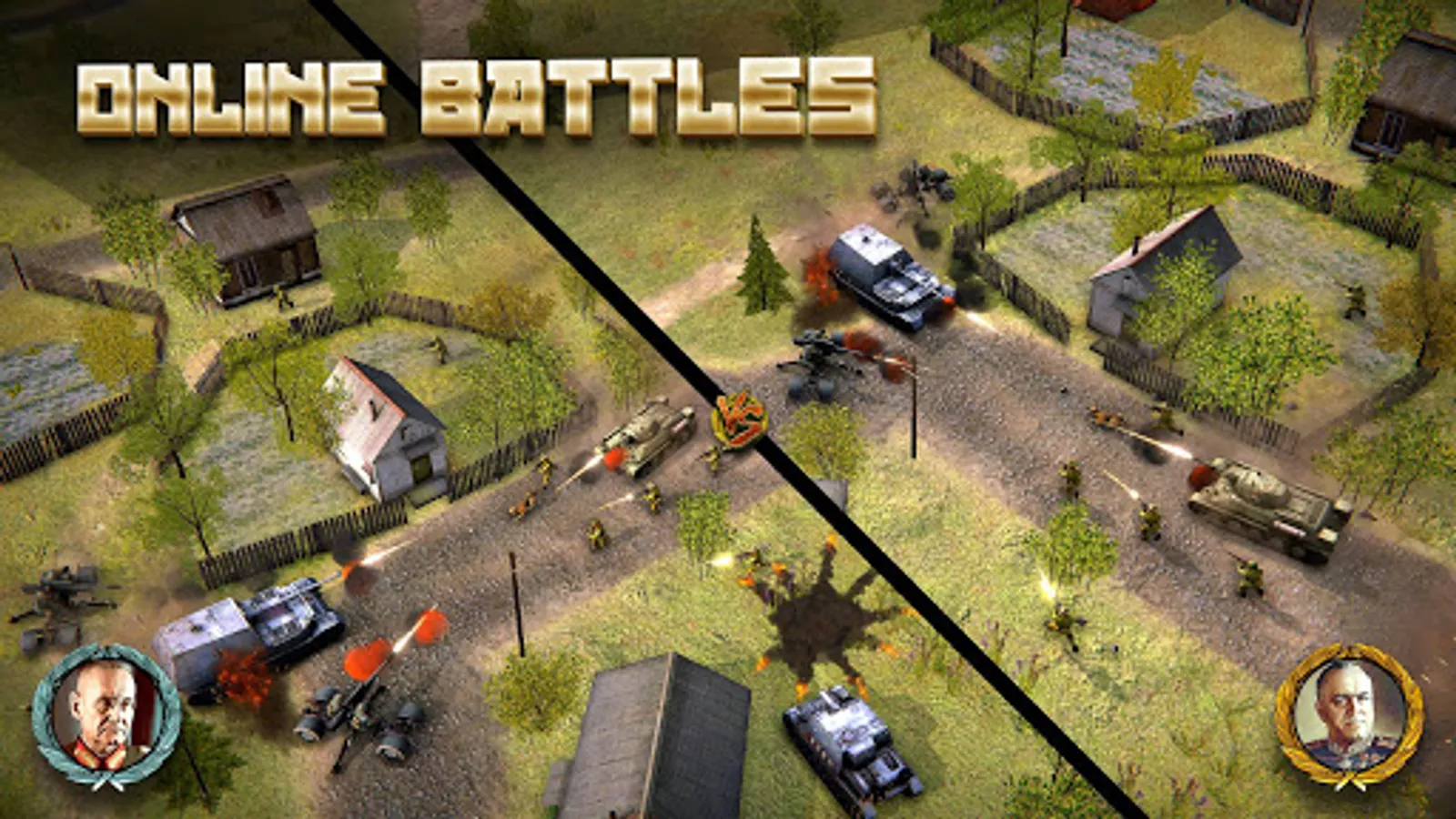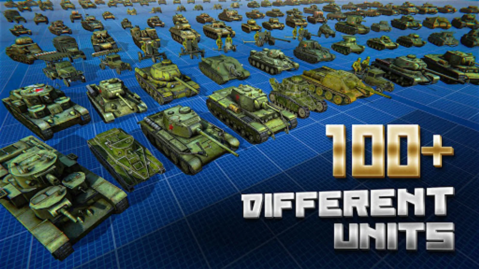 In the game, at any time you can zoom in on the camera to view the battle in great detail. As well as to move it away in order to navigate the battlefield. Thanks to the honest 3D graphics, the camera can be rotated to choose the most comfortable angle. All unit models are made with love and are of the highest quality for mobile gaming standards. You will never confuse the German Tiger tank with the Soviet T-34