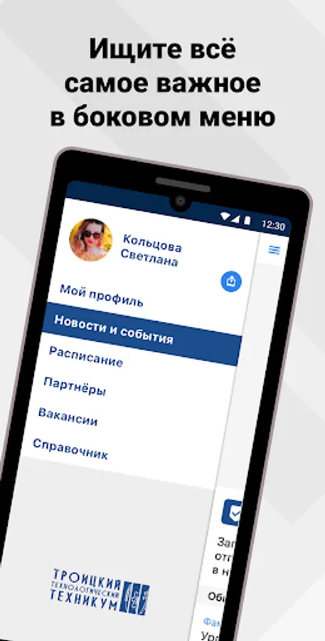 Section and notifications about the news and events of the department, with the ability to sign up for an event or leave a reaction to it.