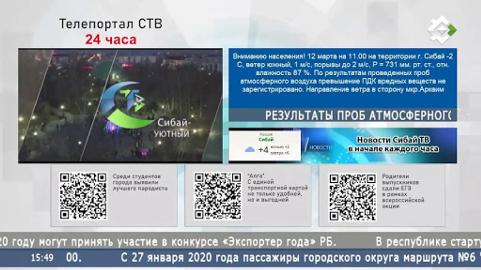 Watching the broadcast of the STV channel (Sibay television) for free online. License No. TV 29694 dated March 1, 2019 was issued by the Federal Service for Supervision of Communications, Information Technologies and Mass Communications.